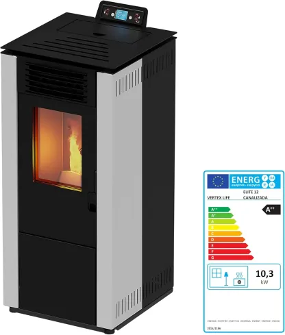 El ELITE 12 incorpora un panel de control programable con configuraciones diarias y semanales, una tolva de 18.5 kg que proporciona gran autonomía y un sistema de vidrio limpio que mantiene la vista de la llama por más tiempo.